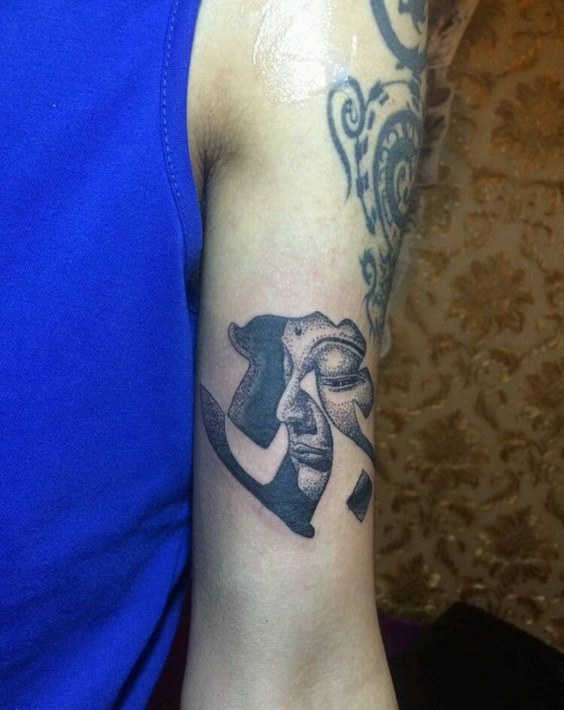 当前位置: 首页 >陕西省宝鸡市纹身店-文博刺青工作室纹身图案>点刺佛头纹身图片