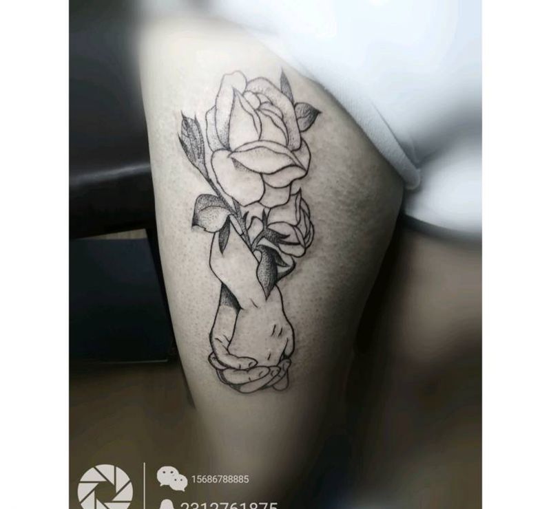 • 手背潮流时尚的玫瑰花眼睛纹身图案
