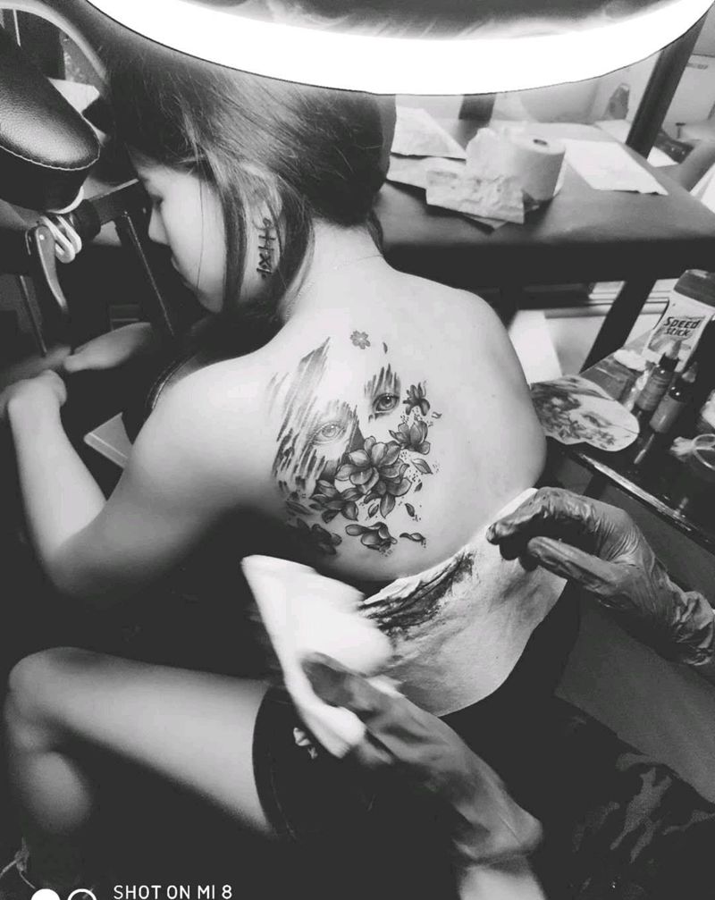 • 黑灰满背纹身图案