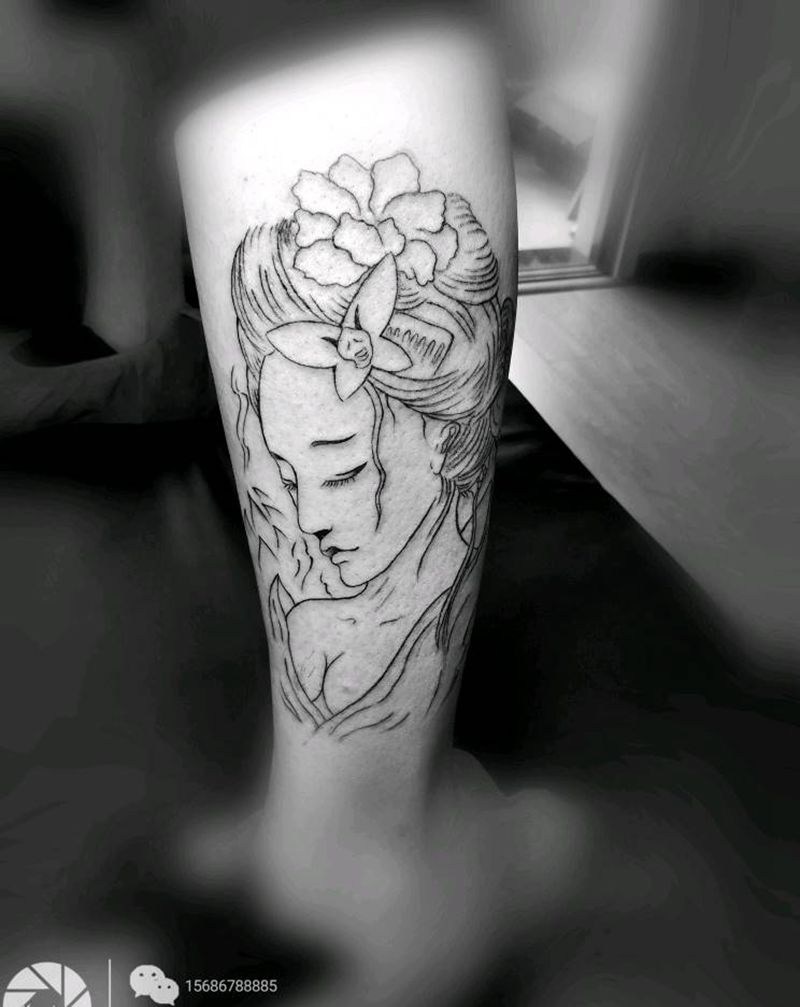 当前位置: 首页 >陕西省汉中市纹身店-N. tattoo纹身图案>艺伎线条纹身图片