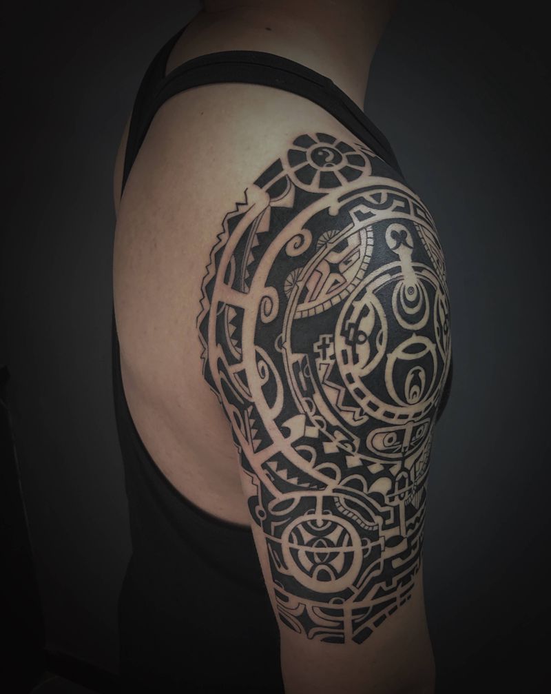 • 纹身吧推荐的披肩图腾半胛纹身图案作品展示
