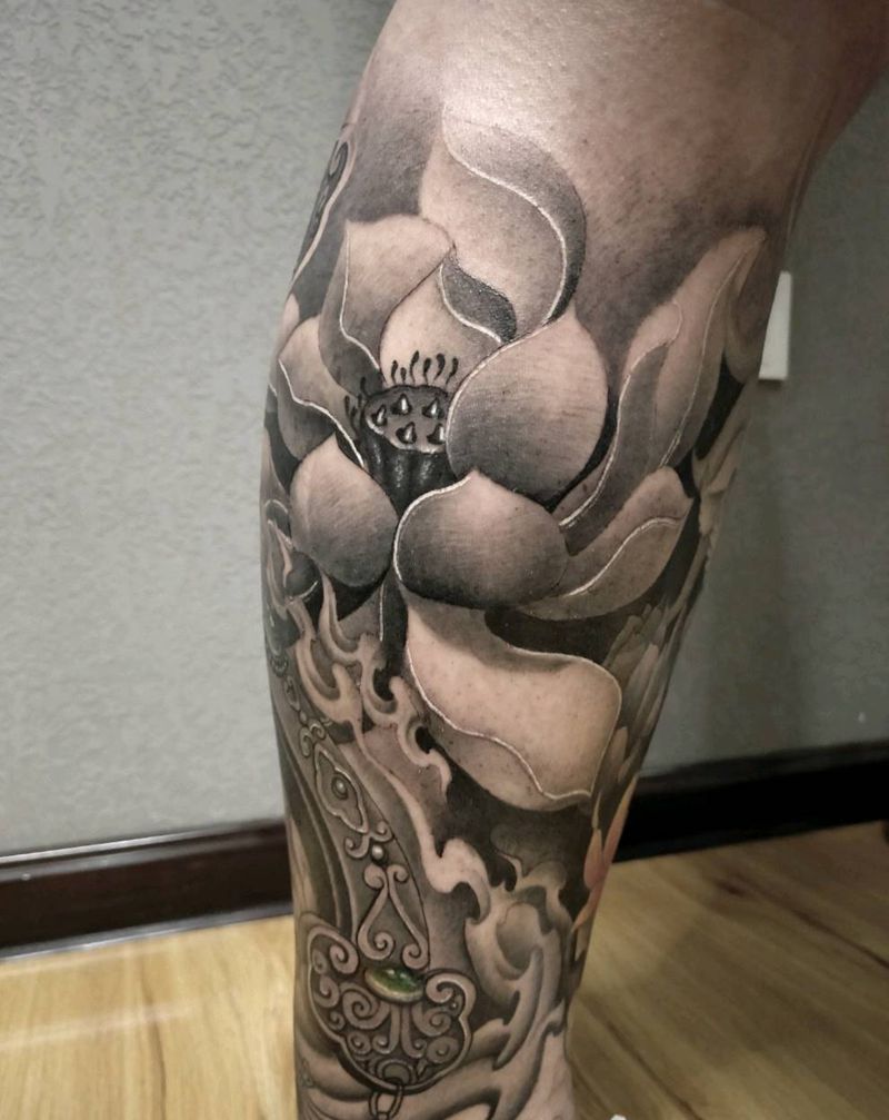 当前位置: 首页 >甘肃省定西市纹身店-雕艺刺客纹身图案>如意莲花纹身图片_腿部新传统纹身图案