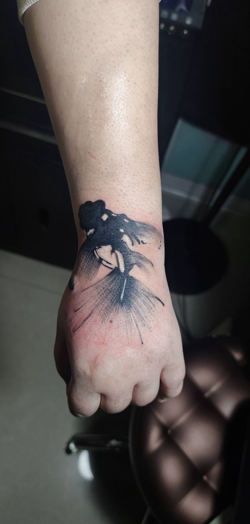 当前位置: 首页 >青海省西宁市纹身店-大鹏刺青工作室纹身图案>水墨金鱼纹身图片_手部手臂水墨纹身图案