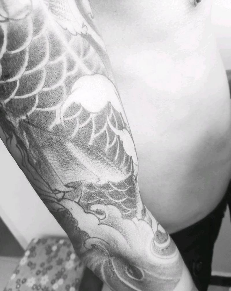 当前位置: 首页 >青海省西宁市纹身店-大鹏刺青工作室纹身图案>锦鲤纹身图片_手臂新传统纹身图案
