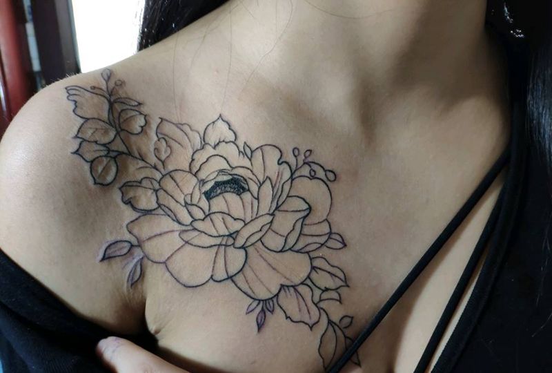 • 女性大花胸纹身_43张霸气漂亮的女性大花胸纹身图案作品