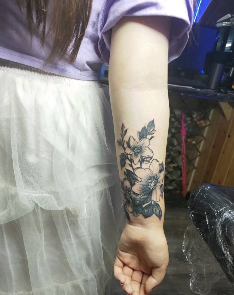 素花,遮盖小羽毛纹身图片_手臂纹身图案