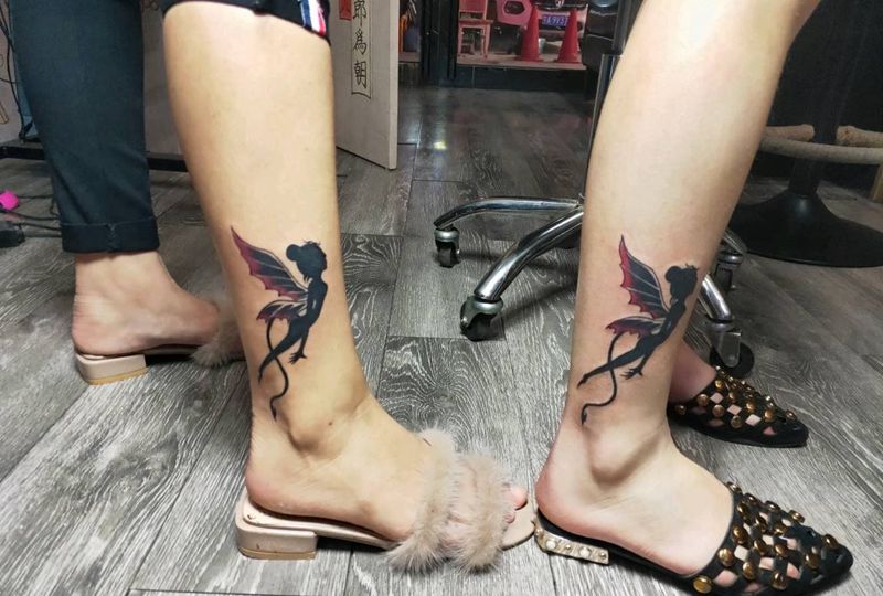 小天使纹身图片_腿部纹身图案