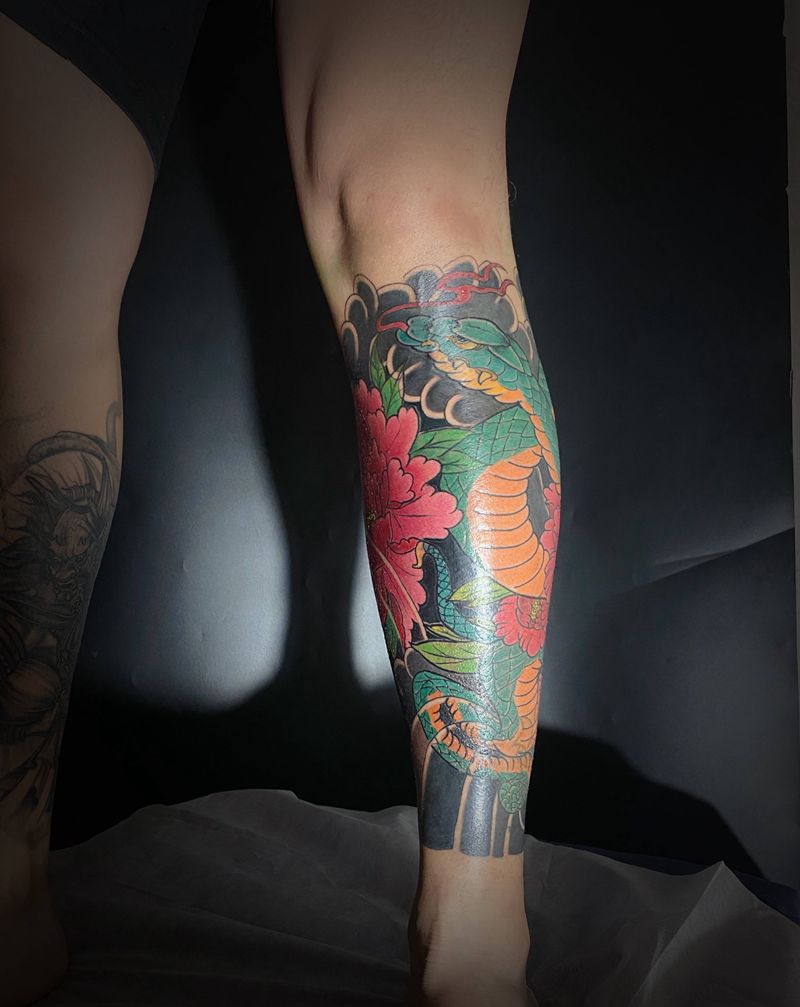当前位置: 首页 >宁夏银川市纹身店-银川市金凤区佛陀刺青店纹身图案>大蛇纹身图片_腿部老传统纹身图案