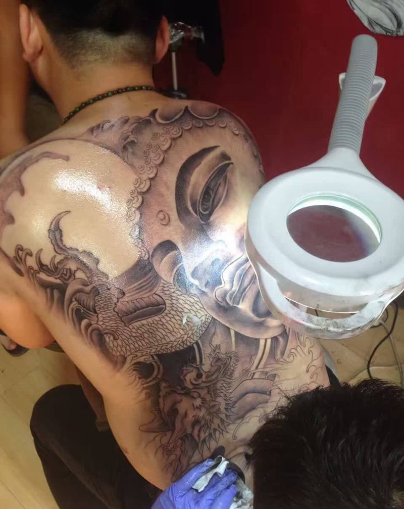 满背佛陀纹身图片_背部传统鬼神宗教人物动物纹身图案