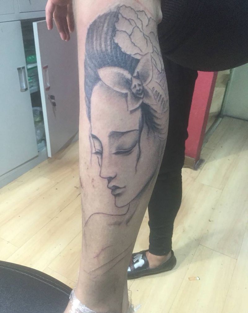 当前位置: 首页 >宁夏银川市纹身店-银川市金凤区佛陀刺青店纹身图案>艺妓纹身图片_成品腿部传统肖像欧美人物纹身图案
