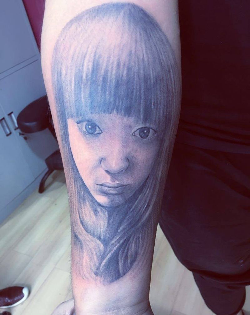 当前位置: 首页 >宁夏银川市纹身店-银川市金凤区佛陀刺青店纹身图案>肖像纹身图片_成品手臂写实肖像人物情侣纹身图案