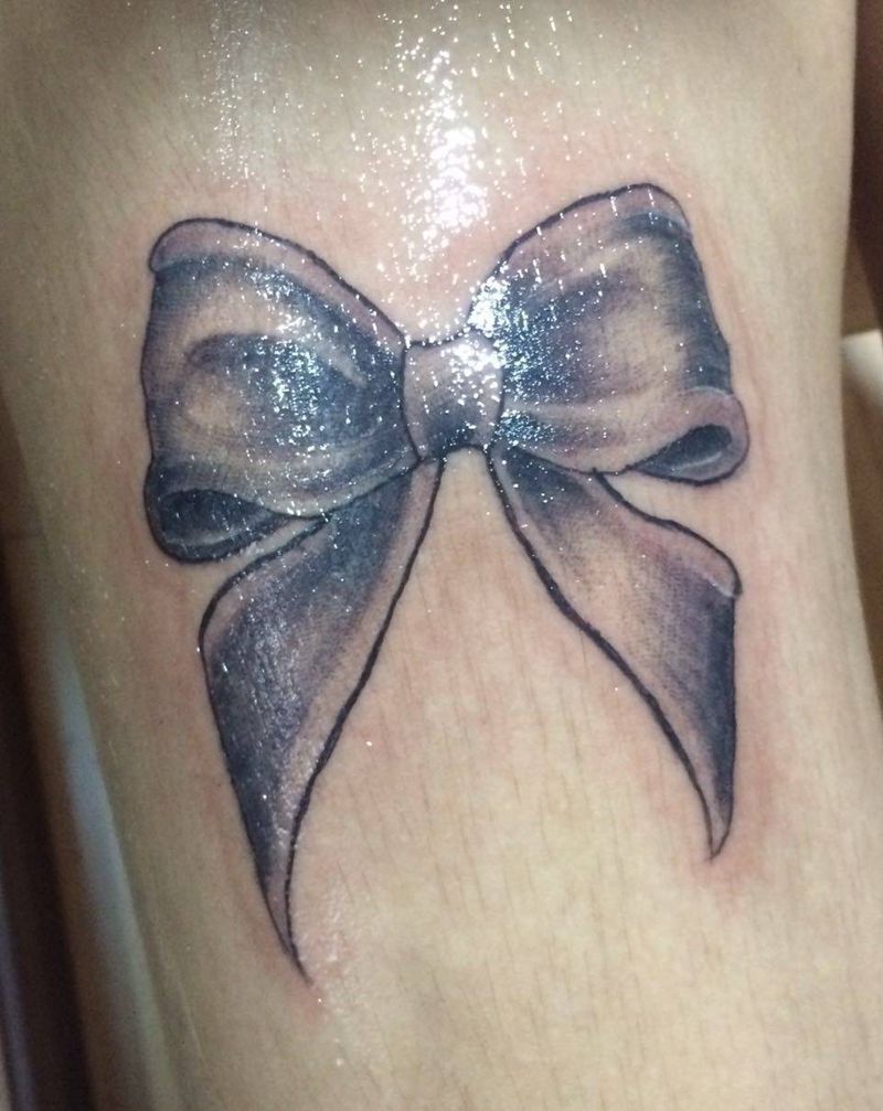 腿部蝴蝶结纹身图片_成品腿部清新几何纹身图案