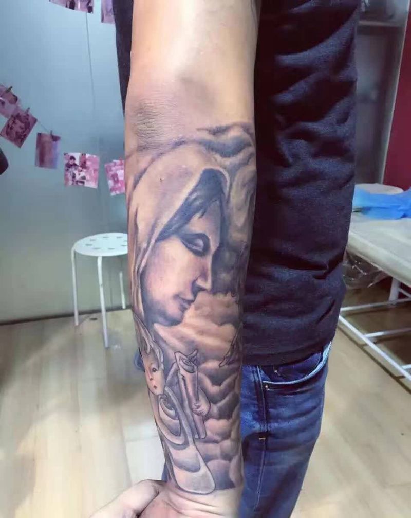当前位置: 首页 >宁夏银川市纹身店-银川市金凤区佛陀刺青店纹身图案>欧美写实纹身图片_成品手臂欧美肖像写实人物宗教纹身图案