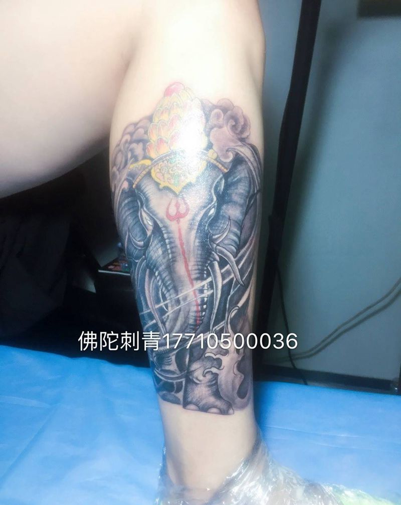 六牙白象纹身图片_成品手稿腿部传统动物银川 宁夏佛陀刺青纹身图案