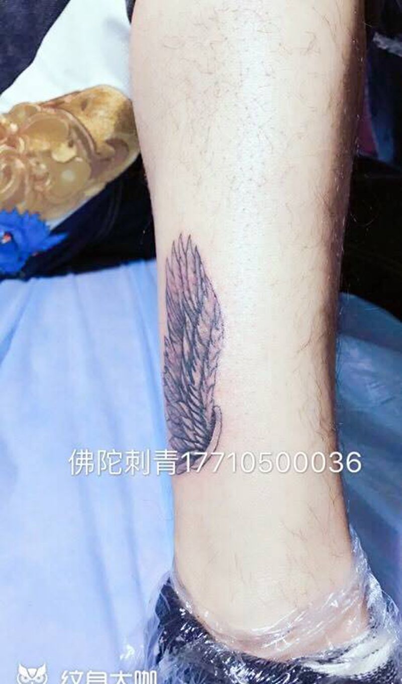 天使翅膀纹身图片_成品手稿腿部清新银川 宁夏佛陀刺青纹身图案