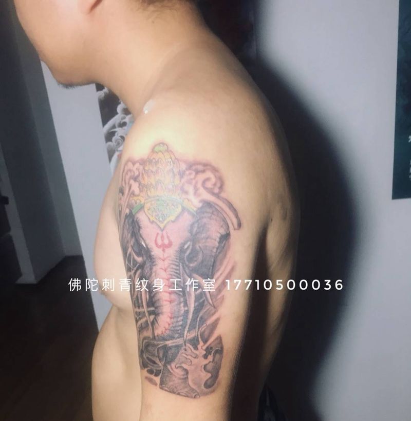 六牙白象纹身图片_成品手臂传统动物宁夏银川佛陀刺青宗教纹身图案