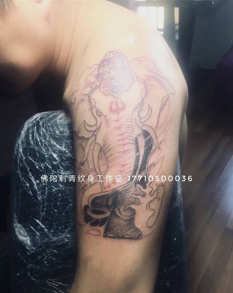 六牙白象纹身图片_成品手臂传统动物宁夏银川佛陀刺青宗教纹身图案