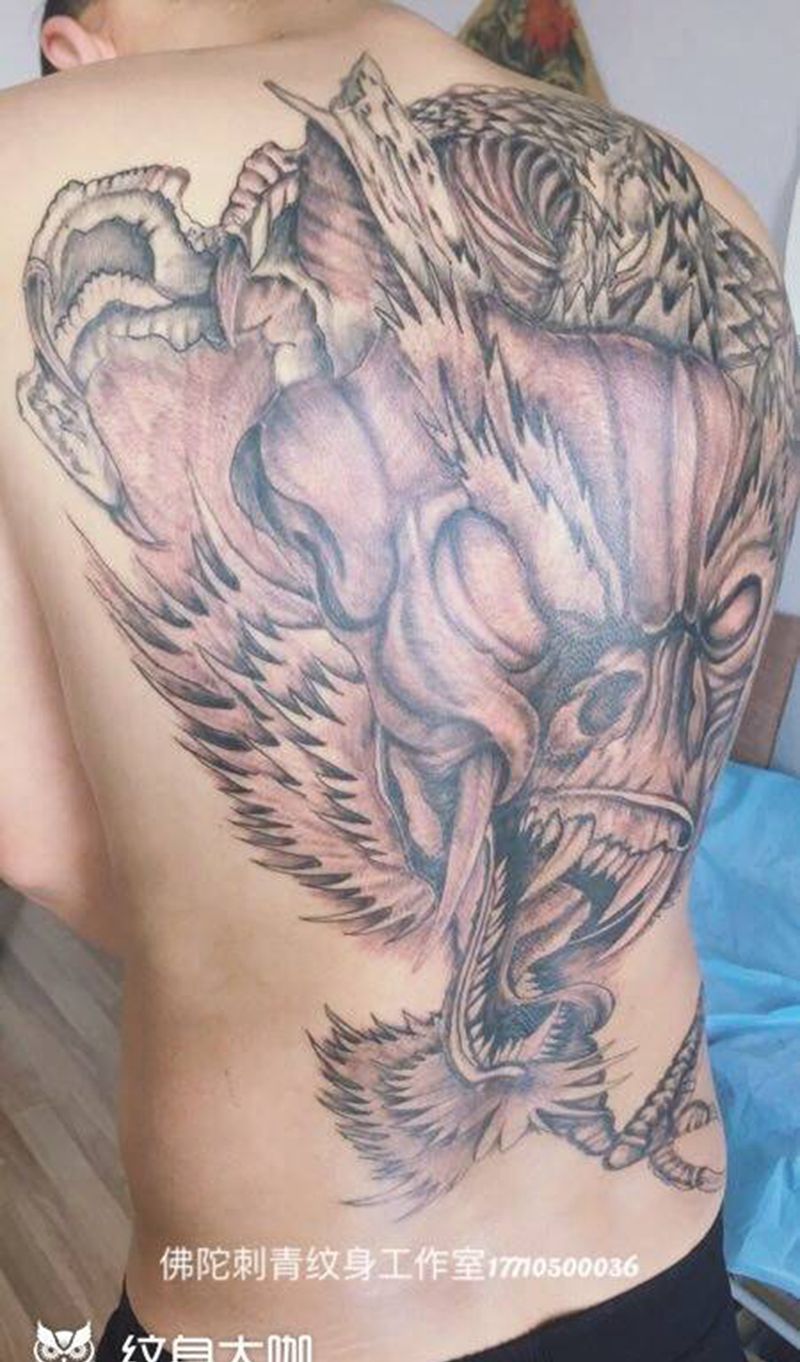 后背龙完工 下次做背景纹身图片_成品背部传统动物宁夏银川佛陀刺青纹身图案