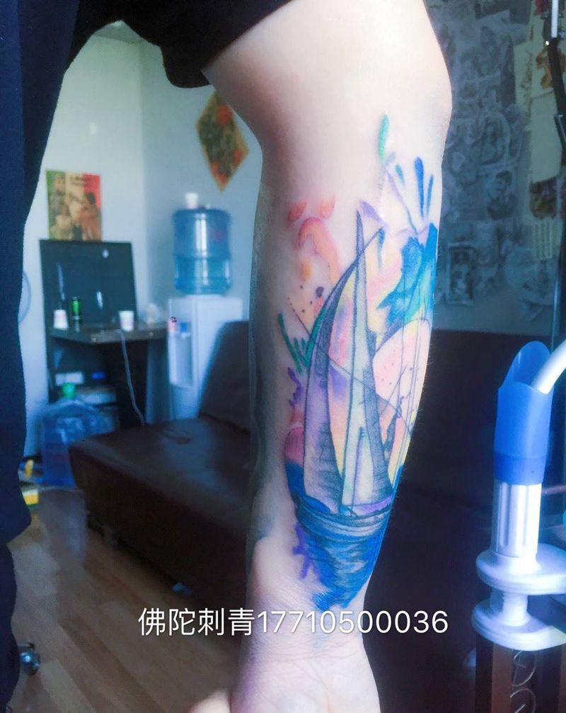 当前位置: 首页 >宁夏银川市纹身店-银川市金凤区佛陀刺青店纹身图案>水彩帆船纹身图片_成品手稿手臂欧美清新几何宁夏银川中国纹身图案