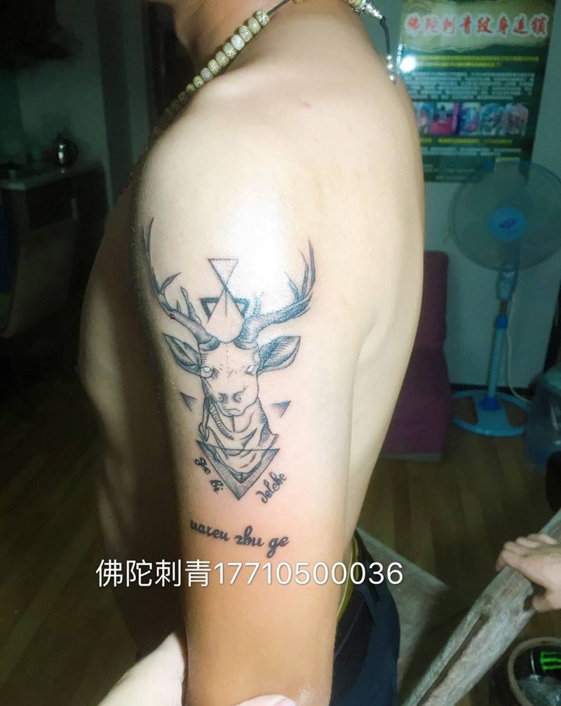 鹿头纹身图片_成品手稿手臂清新动物宁夏银川中国纹身图案