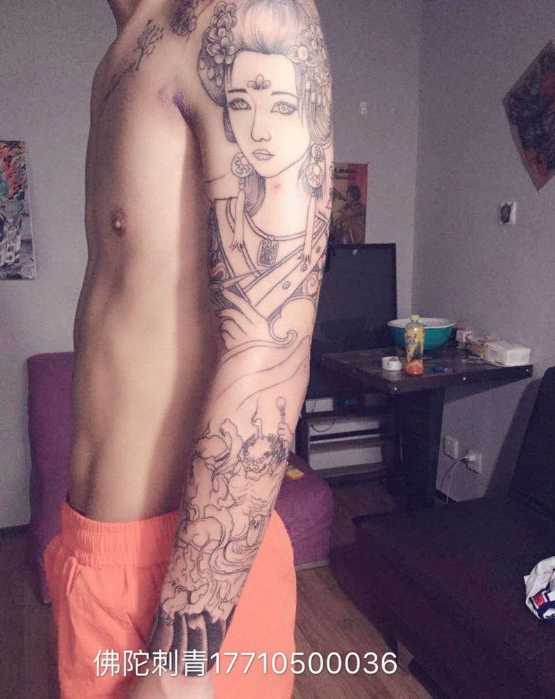 当前位置: 首页 >宁夏银川市纹身店-银川市金凤区佛陀刺青店纹身图案>花臂线条纹身图片_成品手稿手臂传统人物宁夏银川中国纹身图案