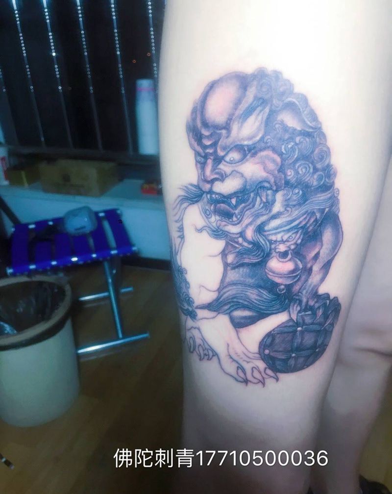 唐狮纹身图片_成品手稿腿部传统动物宁夏银川中国纹身图案