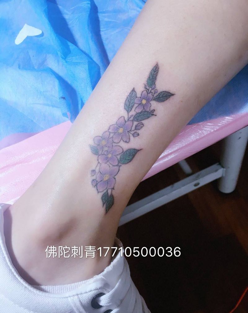 樱花纹身图片_成品手稿腿部清新植物宁夏银川文身 纹身图案