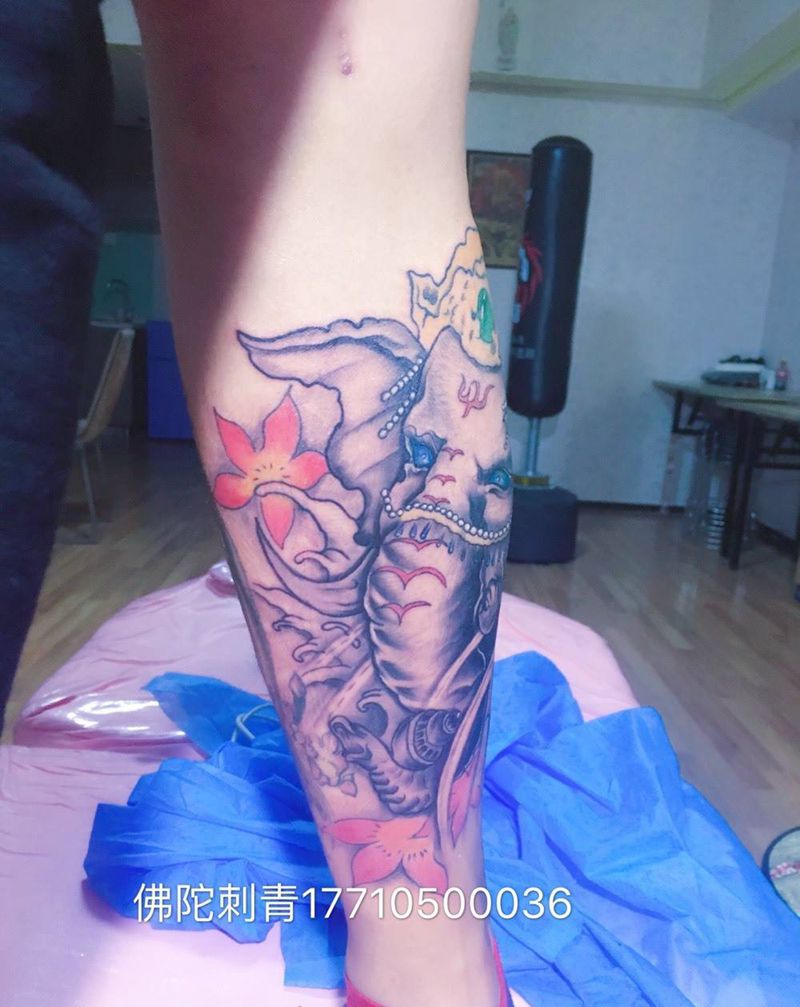 当前位置: 首页 >宁夏银川市纹身店-银川市金凤区佛陀刺青店纹身图案>小腿象神纹身图片_成品手稿腿部传统静物动物鬼神宁夏银川文身 纹身图案