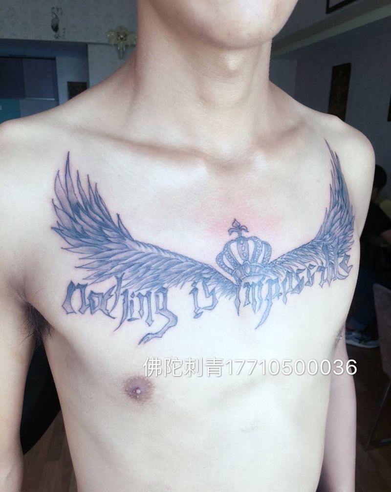 翅膀纹身图片_成品手稿胸部欧美几何字符银川文身 宁夏纹身图案