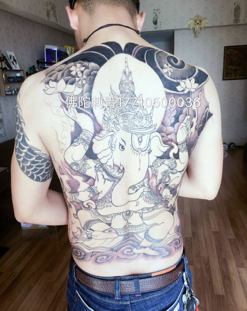 当前位置: 首页 >宁夏银川市纹身店-银川市金凤区佛陀刺青店纹身图案>满背象神纹身图片_成品手稿背部传统宗教动物宁夏银川文身 纹身图案