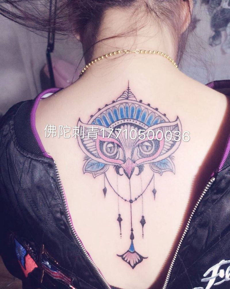 当前位置: 首页 >宁夏银川市纹身店-银川市金凤区佛陀刺青店纹身图案>几何猫头鹰纹身图片_成品背部清新几何宁夏学习学银川文身 纹身图案