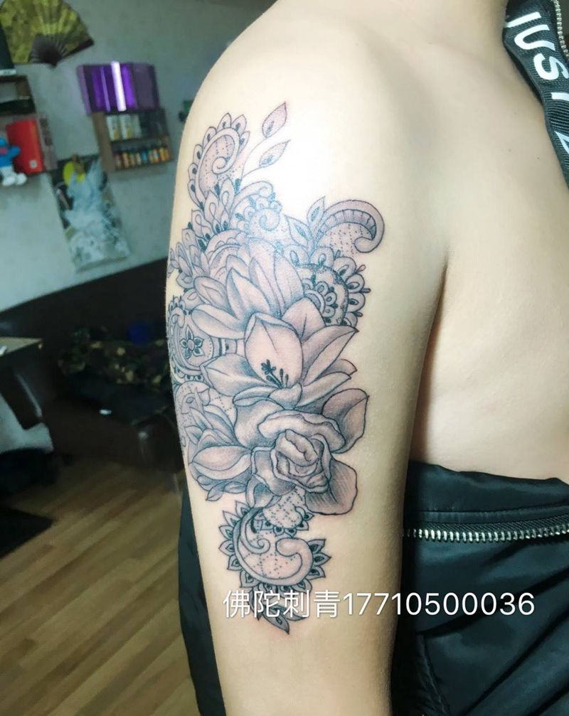 • 女性大花胸纹身_43张霸气漂亮的女性大花胸纹身图案作品
