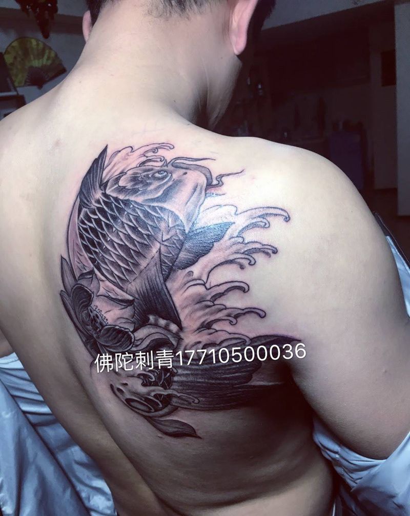 当前位置: 首页 >宁夏银川市纹身店-银川市金凤区佛陀刺青店纹身图案>锦鲤纹身图片_成品手稿背部传统静物宁夏银川文身 学习学纹身图案
