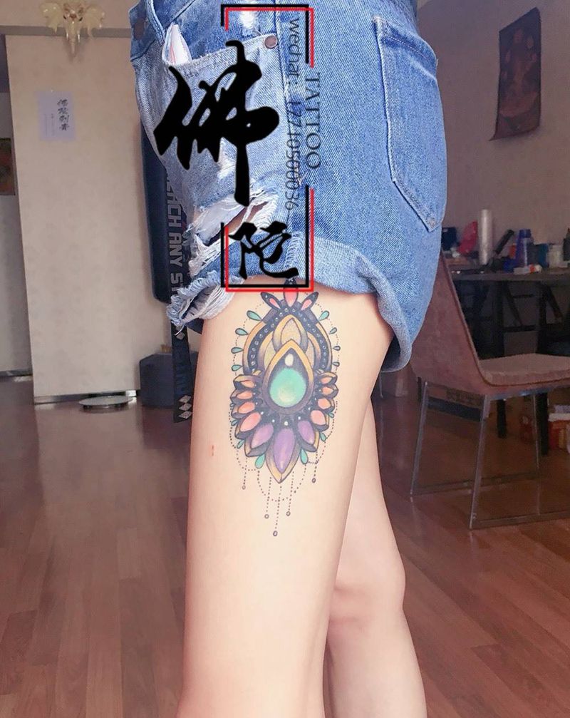 恢复快一年后的纹身纹身图片_成品腿部清新几何宁夏银川文身 学纹身图案