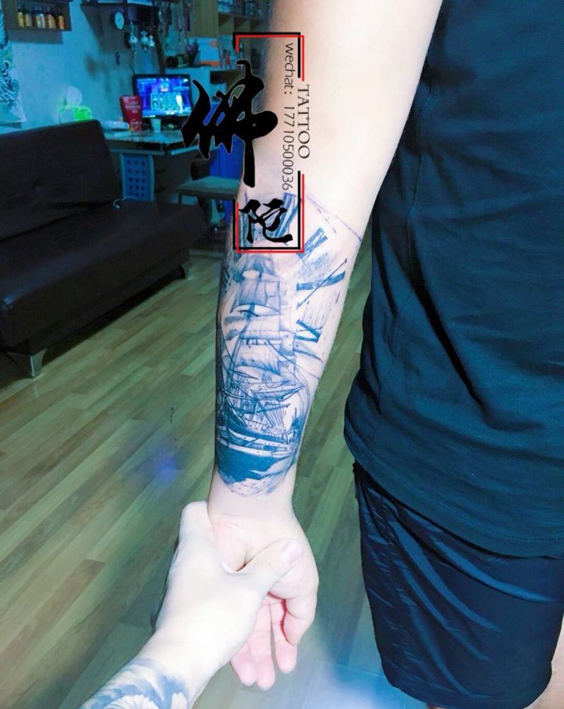 帆船纹身图片_成品手臂写实几何宁夏银川文身 学学习纹身图案