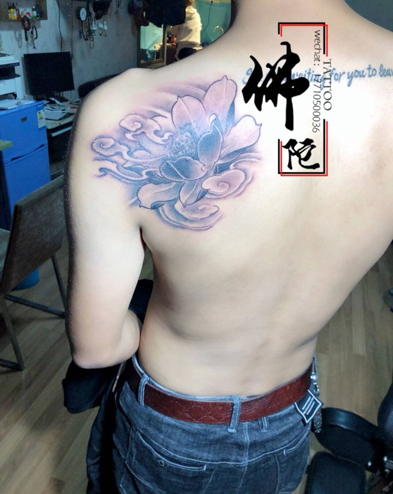 荷花纹身图片_肩部新传统纹身图案