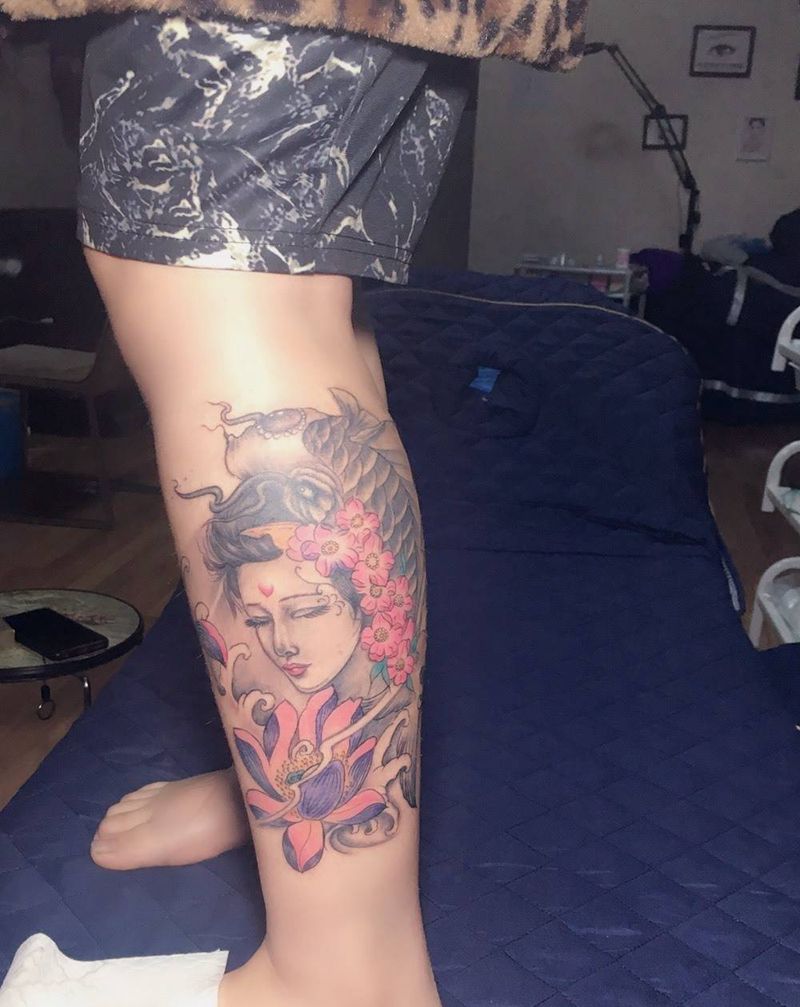 艺妓纹身图片_腿部纹身图案
