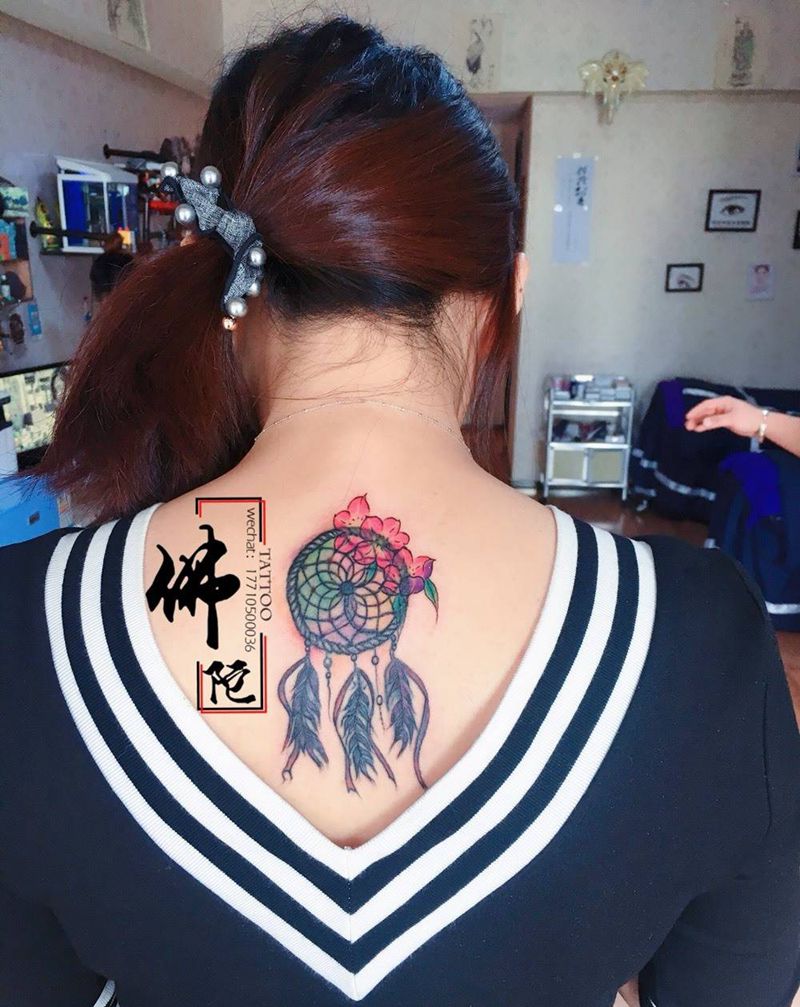 捕梦网纹身图片_背部New School水彩捕梦网纹身图案