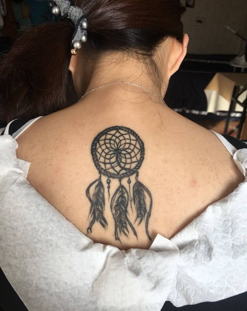 捕梦网纹身图片_背部New School水彩捕梦网纹身图案