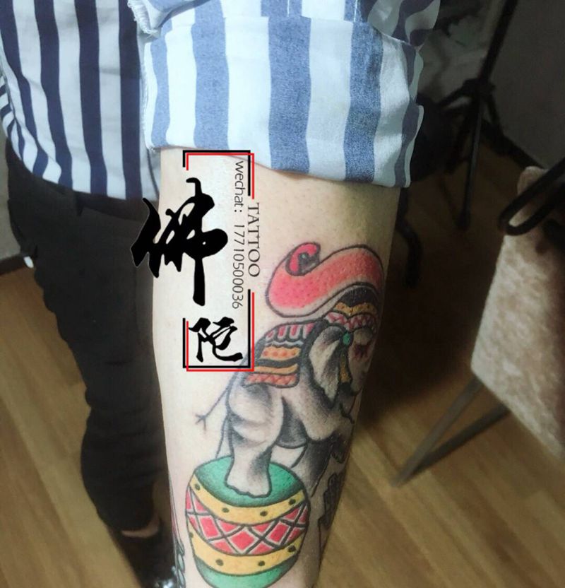 • T包小腿吹火男+阿多福纹身图片_腿部老传统新传统吹火男阿