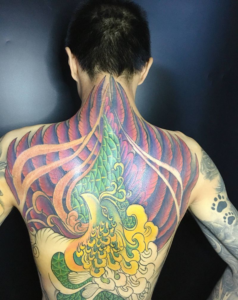 满背凤凰纹身图片_背部新传统纹身图案