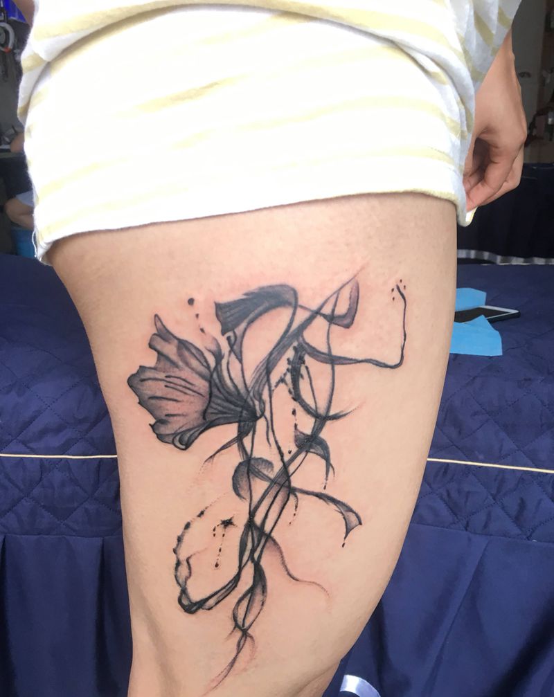 水墨纹身图片_腿部水墨纹身图案
