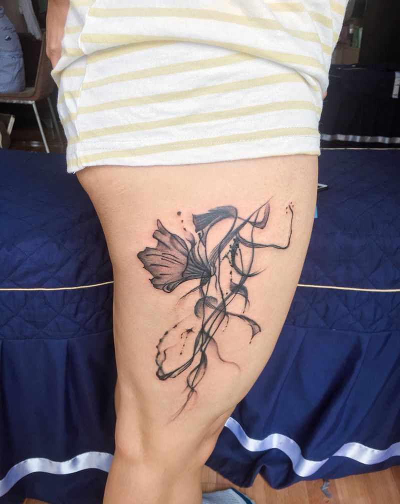 当前位置: 首页 >宁夏银川市纹身店-银川市金凤区佛陀刺青店纹身图案>水墨纹身图片_腿部水墨纹身图案