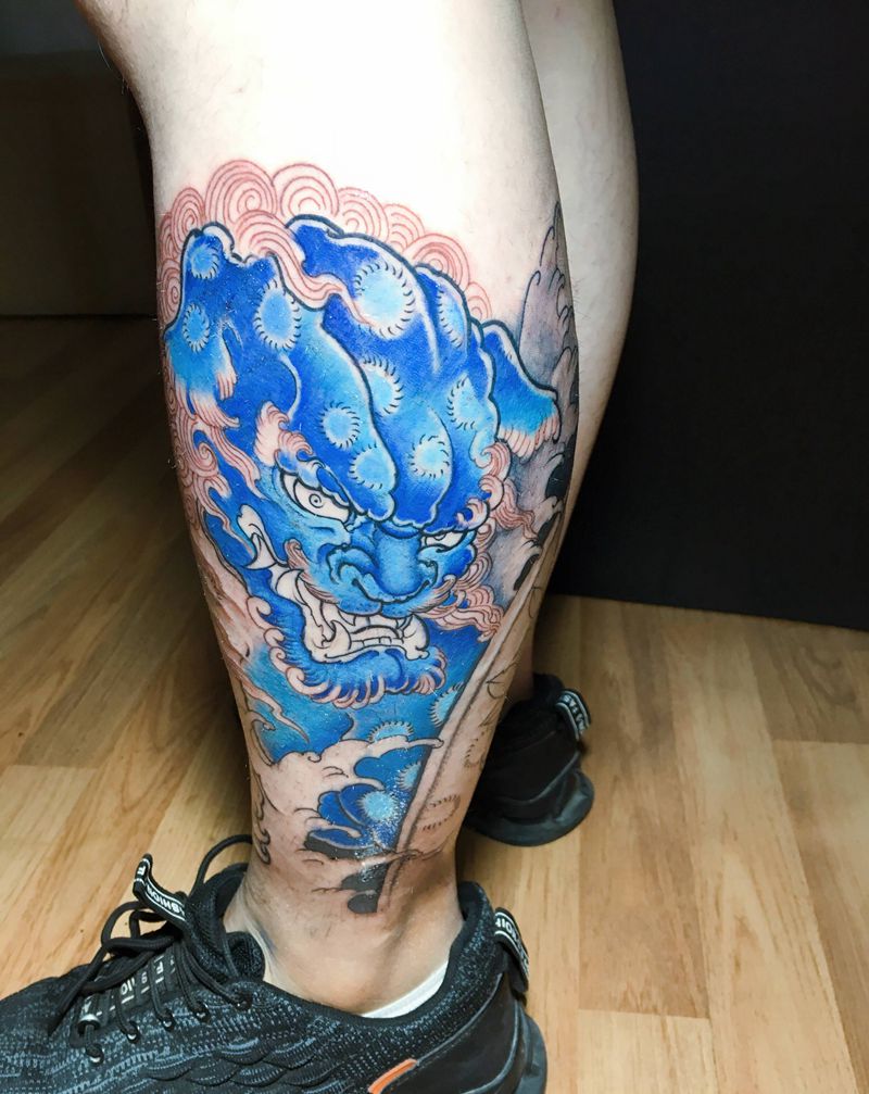 当前位置: 首页 >宁夏银川市纹身店-银川市金凤区佛陀刺青店纹身图案>唐狮子纹身图片_腿部新传统纹身图案