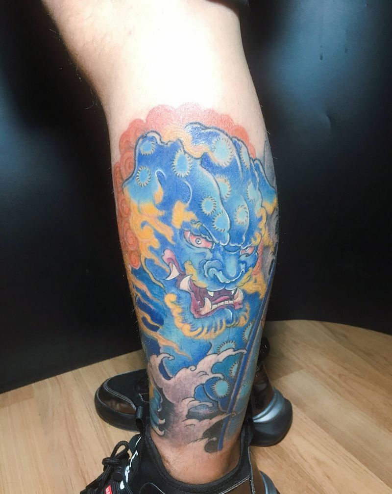当前位置: 首页 >宁夏银川市纹身店-银川市金凤区佛陀刺青店纹身图案>唐狮纹身图片_腿部新传统纹身图案