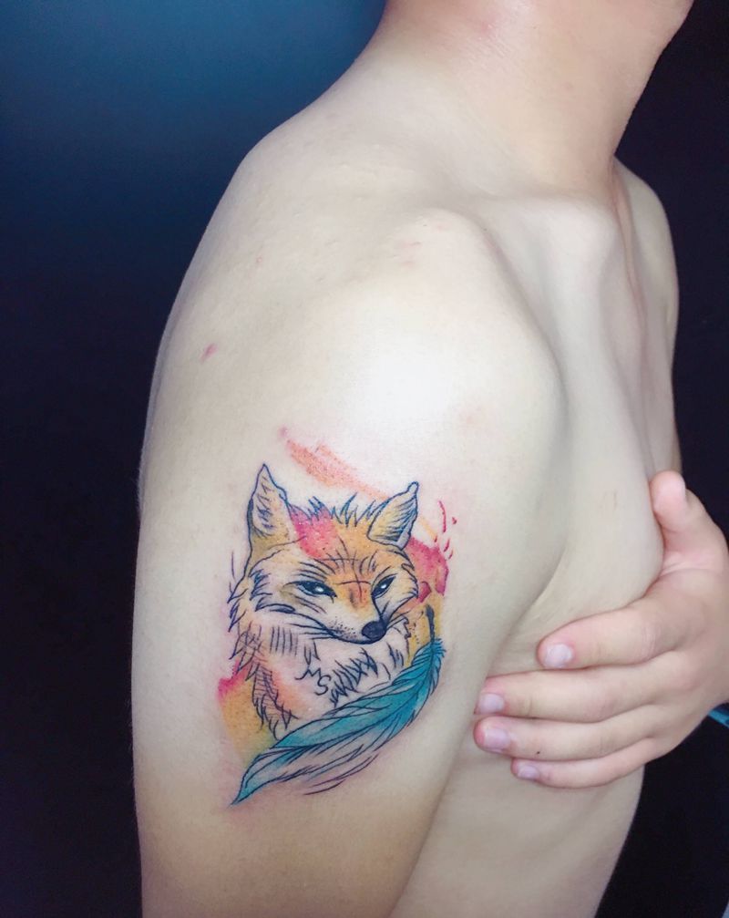当前位置: 首页 >宁夏银川市纹身店-银川市金凤区佛陀刺青店纹身图案>狐狸纹身图片_手臂水彩纹身图案