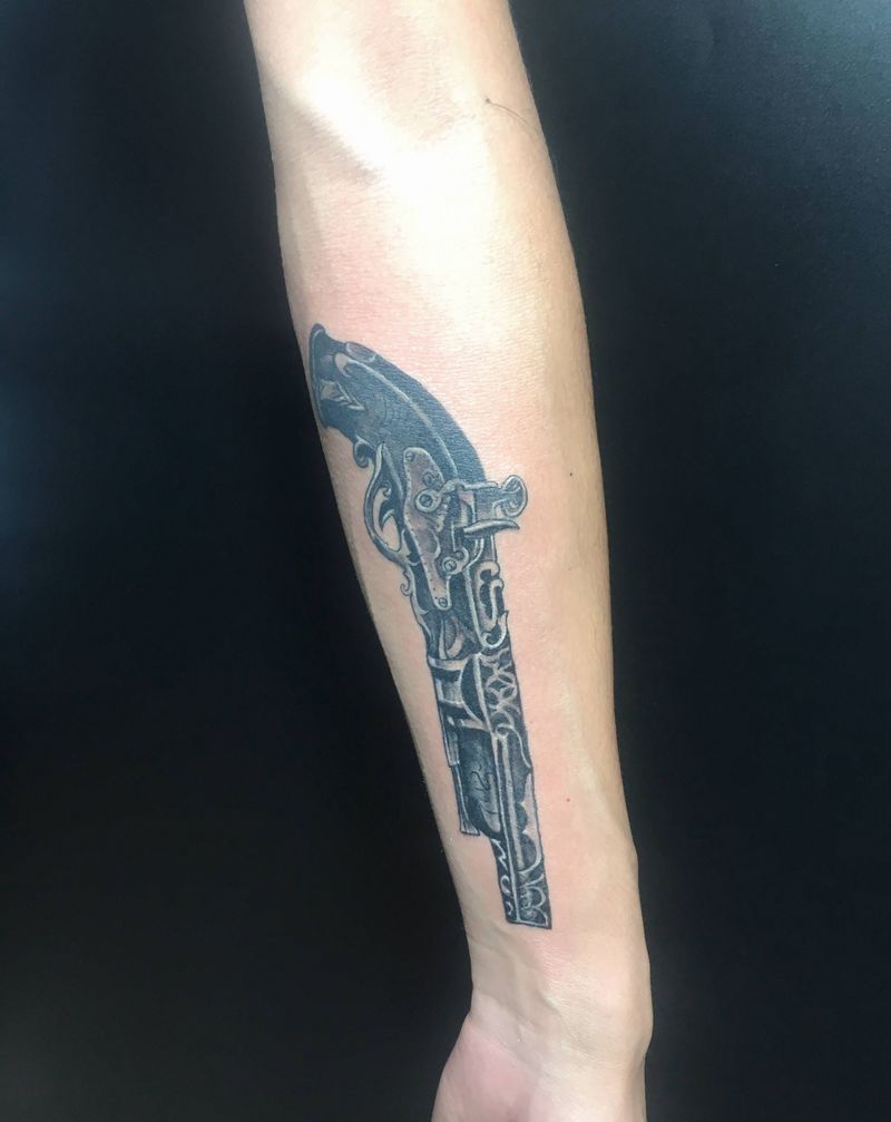 当前位置: 首页 >宁夏银川市纹身店-银川市金凤区佛陀刺青店纹身图案>手枪纹身图片_手臂欧美写实纹身图案