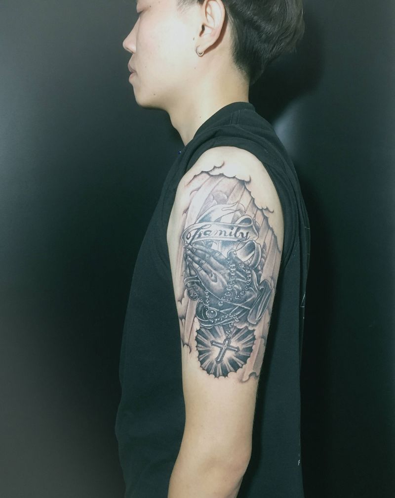 当前位置: 首页 >宁夏银川市纹身店-银川市金凤区佛陀刺青店纹身图案>祈祷手纹身图片_手臂纹身图案