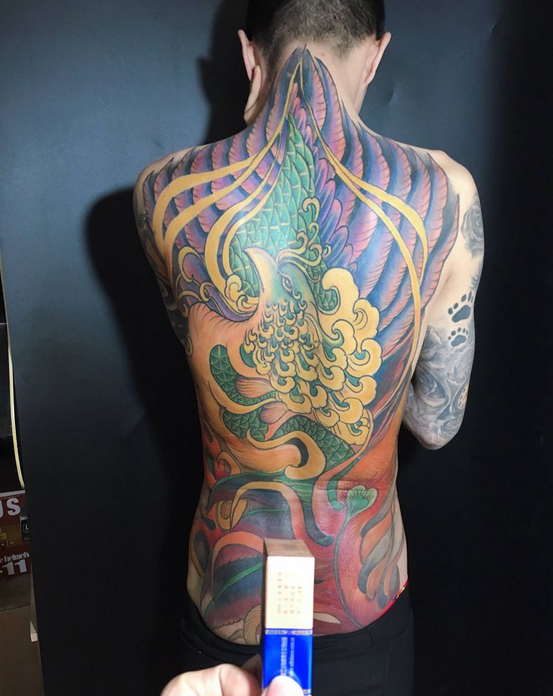 当前位置: 首页 >宁夏银川市纹身店-银川市金凤区佛陀刺青店纹身图案>凤凰纹身图片_背部新传统纹身图案