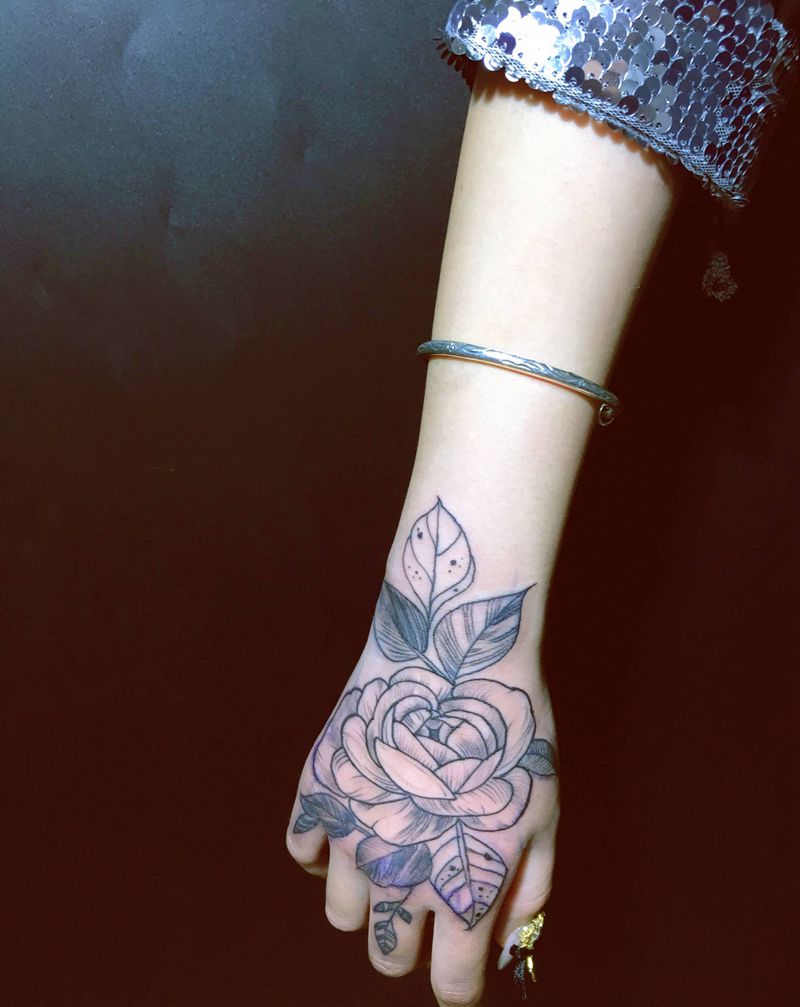 • 手背潮流时尚的玫瑰花眼睛纹身图案